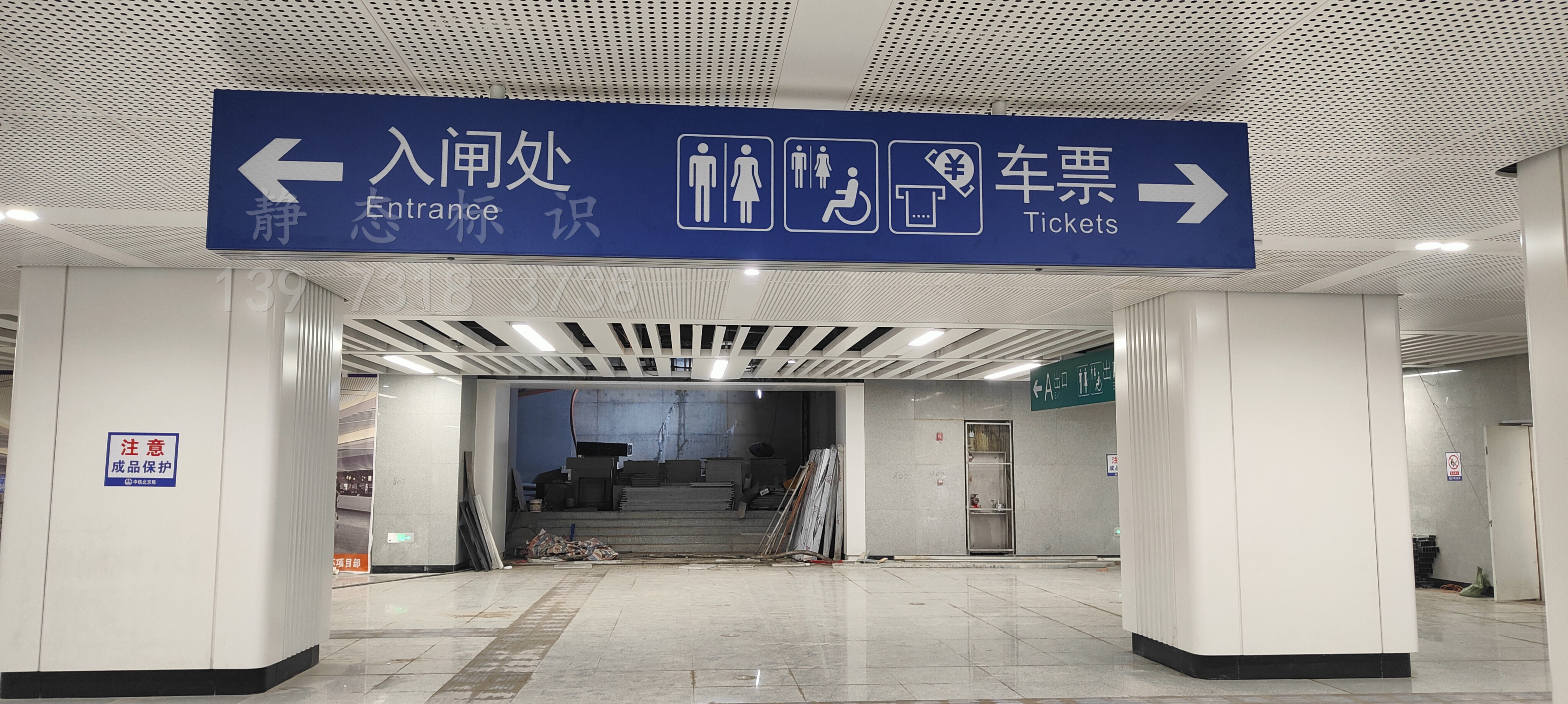 湖南愛奧尼標(biāo)識工程有限公司憑借在軌道交通標(biāo)識領(lǐng)域的豐富經(jīng)驗,承擔(dān)了這兩座車站的靜態(tài)標(biāo)識制作與安裝任務(wù)。我們的團(tuán)隊嚴(yán)格遵循國家鐵路標(biāo)識規(guī)范 ,結(jié)合車站建筑特點與客流組織需求,打造了一套直觀、易讀、耐久 的標(biāo)識系統(tǒng),涵蓋導(dǎo)向標(biāo)識、功能標(biāo)識、安全警示標(biāo)識等多個類別。